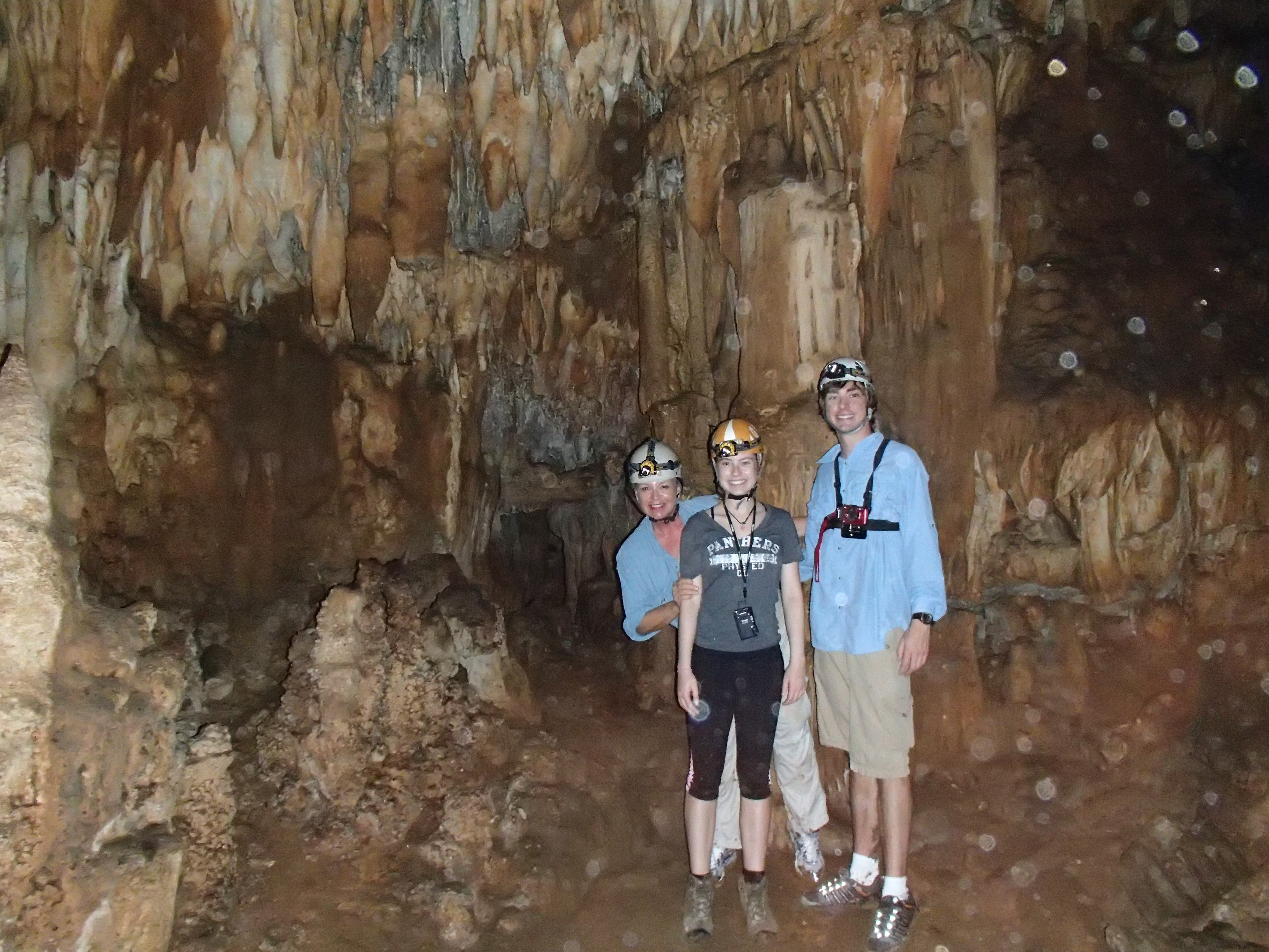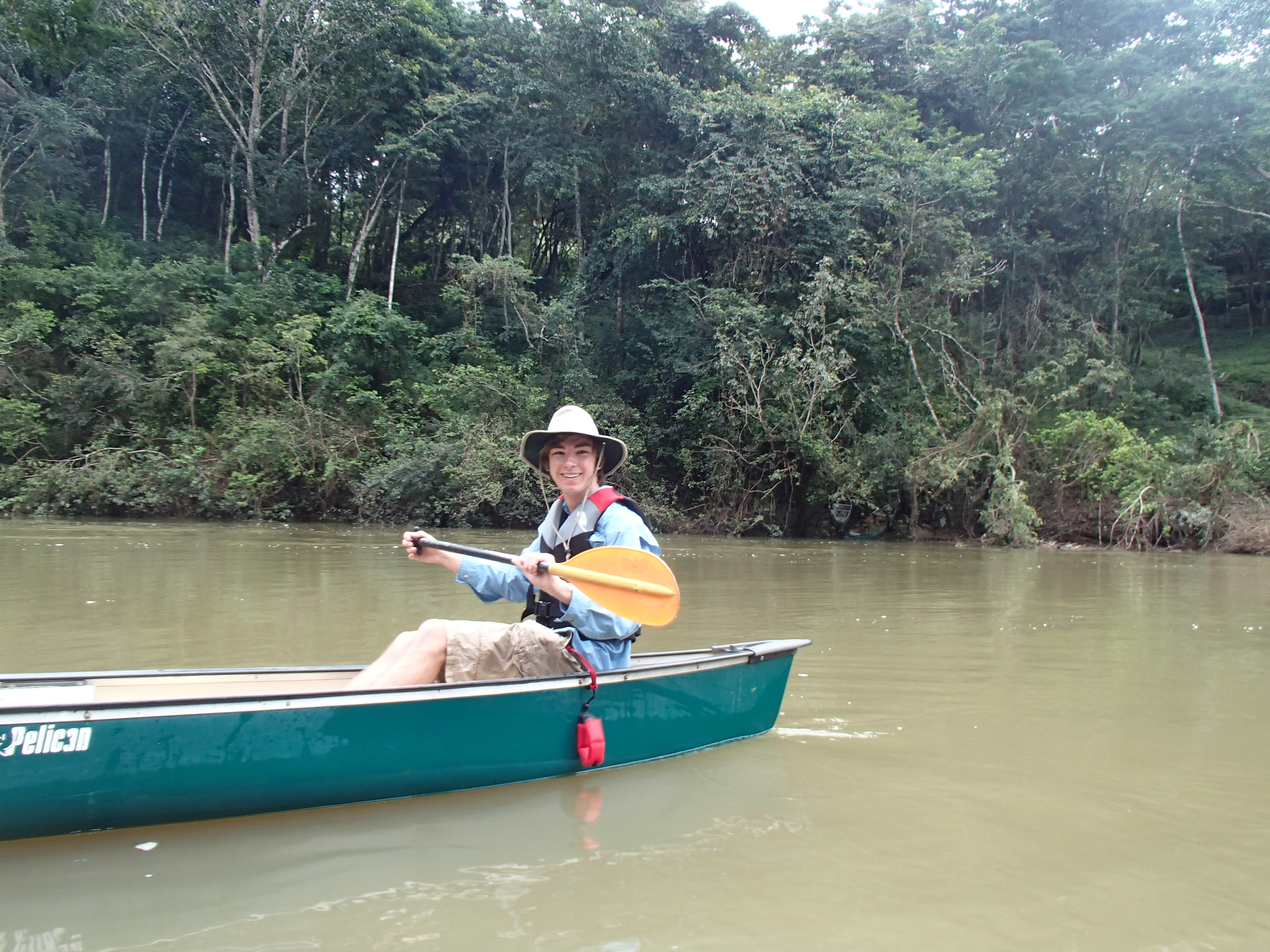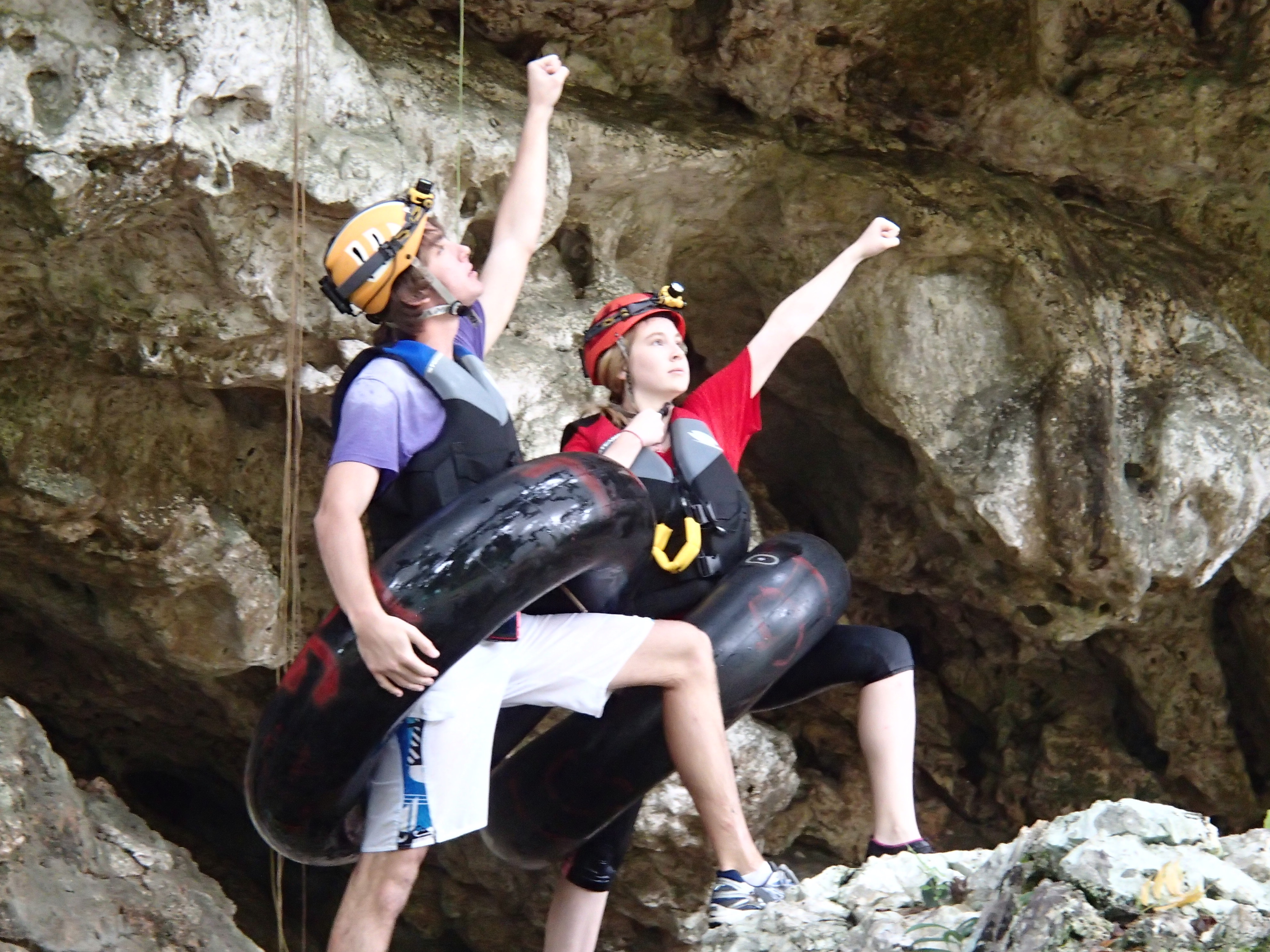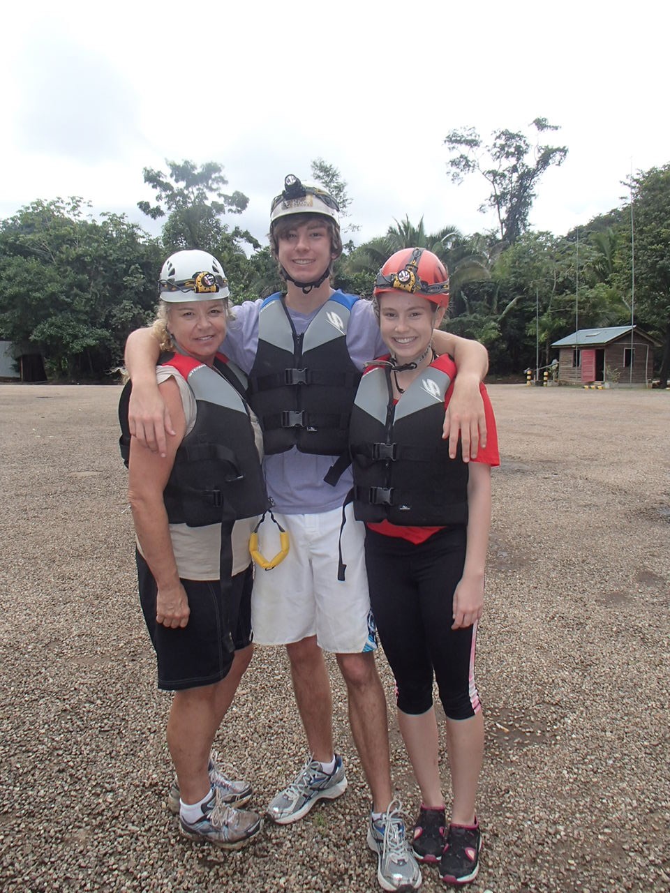 Drinking fresh well water A glass of water from their own well! Imagine being able to drink water from the faucet! Cold and very good! Our first day we were taken to up and over the mountain to one of the many caves and we repelled into the cave. This is NOT So much fun!a tourist destination it is a place the locals found. The cave was massive. Eber our guide for our stay was amazing and always had the answer to your question. Then we went to a place where we could swim with waterfalls all around us. We only saw two people briefly all day. They packed a very good picnic lunch for us and we picnicked on a table overlooking the cascading waterfalls.  Back to our luxury cabin for a hot shower and dinner. Always fun to see who has arrived in the resort. With only 8 cabins you get to meet people from all over the world. The next day we went zip lining at Calico Jacks. We have zip lined all over the world and this one was a lot of fun. Then we went horseback riding on the well cared for horses that eat green grass every day. They were very spoiled and the horses were perfect for young to old riders. While the kids were out for the morningOLYMPUS DIGITAL CAMERA I had a massage and listening to the sounds of the chickens, goats, and birds was a real treat. We did a lot here and had so much fun. Tom and Nadege would come around each evening and make sure that we had lunch ordered if we were going to be away for the day or to tell us who our private guide was. We just wish we had signed up for 6 days and not 4. We loved being on the river in canoes and then the next day we went in tubes down the river. If you are a bird watcher you better not rush your OLYMPUS DIGITAL CAMERAbreakfast because while you eat the toucan’s eat fresh fruit laid out on large platforms in between the trees. So much fun! The fresh eggs were so good and the homemade banana bread was a daily treat. If you are lucky enough to get one of the 8 rooms make sure that you have enough time to do it all or… not at all. You will have privacy if you want or you can meet new friends. We did extensive research and when we were at Mystic River we were very very happy that we were here. Come with a sense of wonder and leave with a sense of Awe. At night you can sleep deeply because of the fresh air and forest silence. Come to renew yourself or bring you closer to your family. Whatever your reason you will be glad you were able to experience Mystic River.