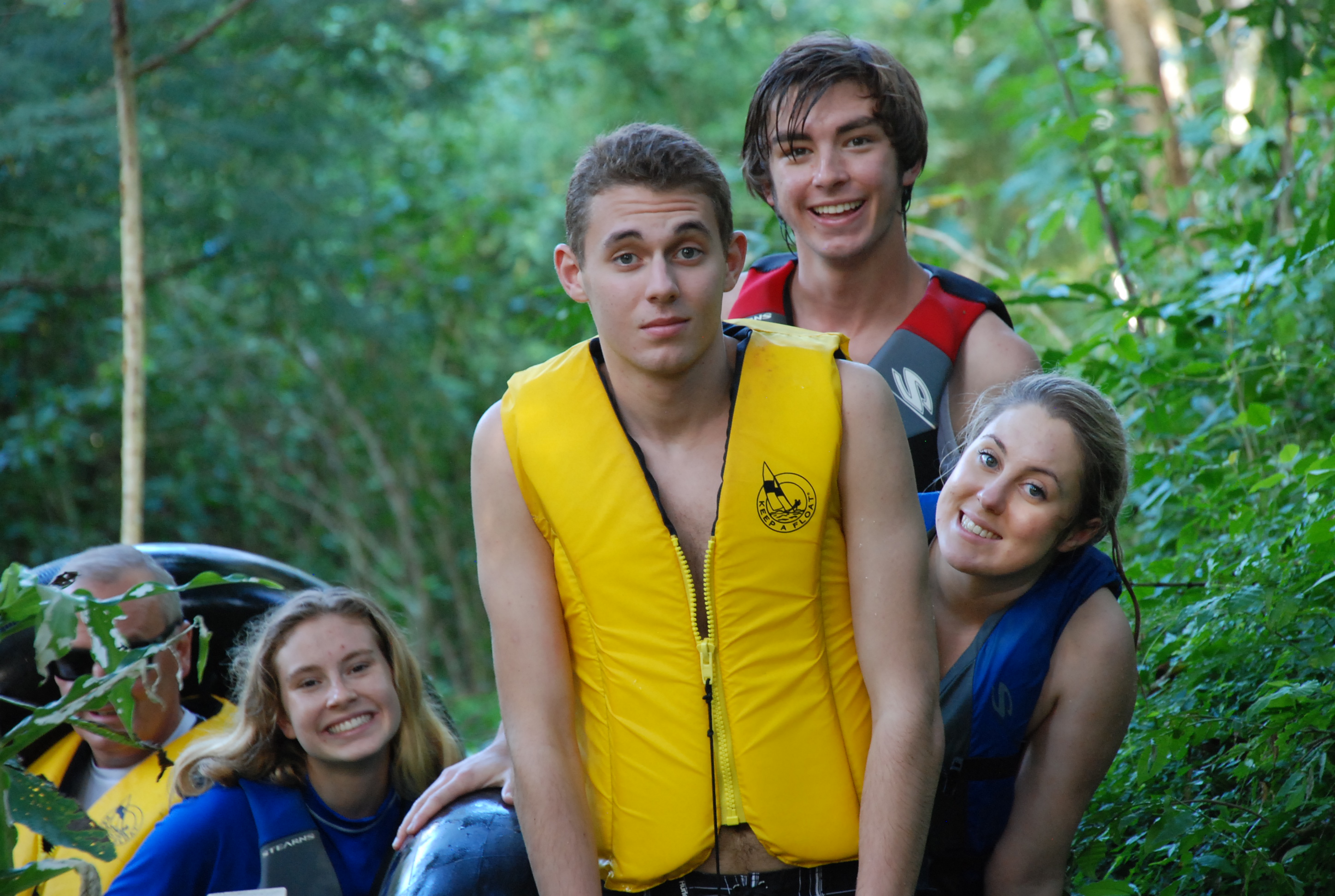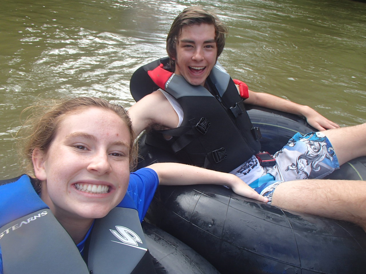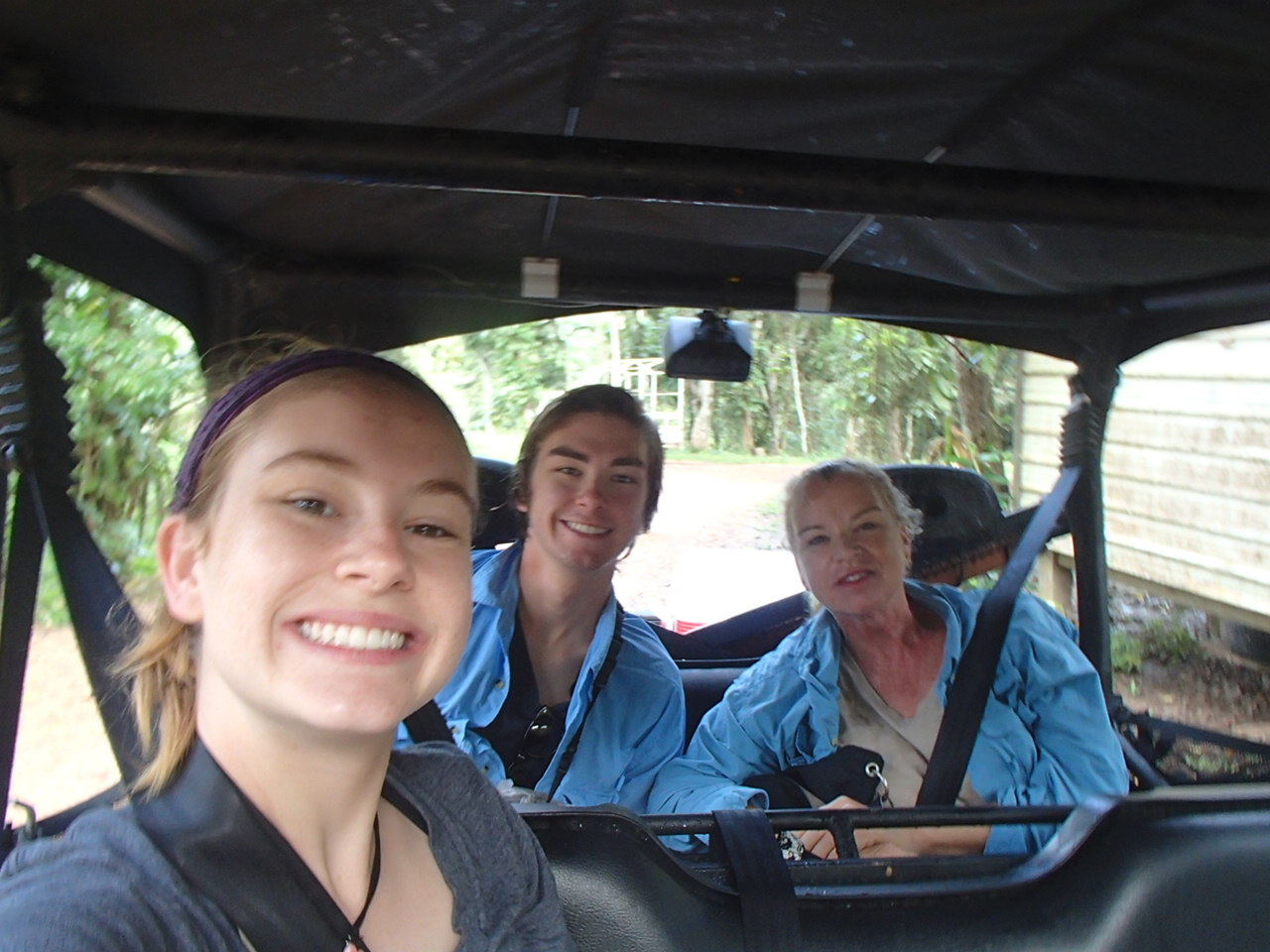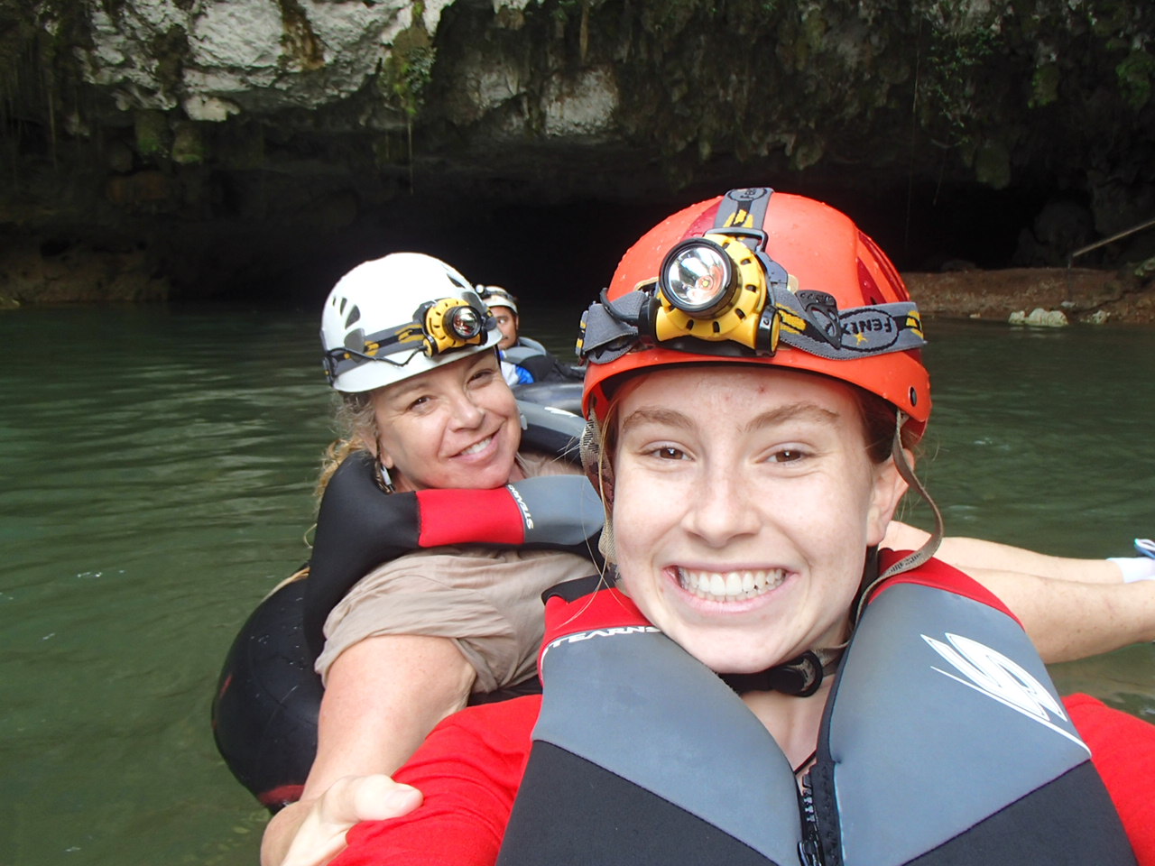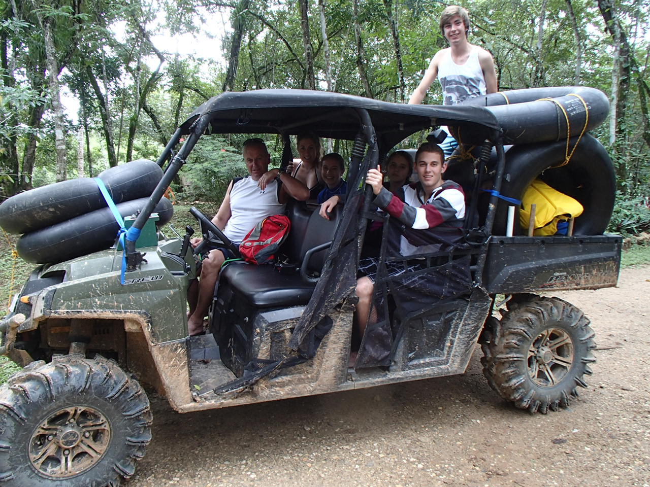 Drinking fresh well water A glass of water from their own well! Imagine being able to drink water from the faucet! Cold and very good! Our first day we were taken to up and over the mountain to one of the many caves and we repelled into the cave. This is NOT So much fun!a tourist destination it is a place the locals found. The cave was massive. Eber our guide for our stay was amazing and always had the answer to your question. Then we went to a place where we could swim with waterfalls all around us. We only saw two people briefly all day. They packed a very good picnic lunch for us and we picnicked on a table overlooking the cascading waterfalls.  Back to our luxury cabin for a hot shower and dinner. Always fun to see who has arrived in the resort. With only 8 cabins you get to meet people from all over the world. The next day we went zip lining at Calico Jacks. We have zip lined all over the world and this one was a lot of fun. Then we went horseback riding on the well cared for horses that eat green grass every day. They were very spoiled and the horses were perfect for young to old riders. While the kids were out for the morningOLYMPUS DIGITAL CAMERA I had a massage and listening to the sounds of the chickens, goats, and birds was a real treat. We did a lot here and had so much fun. Tom and Nadege would come around each evening and make sure that we had lunch ordered if we were going to be away for the day or to tell us who our private guide was. We just wish we had signed up for 6 days and not 4. We loved being on the river in canoes and then the next day we went in tubes down the river. If you are a bird watcher you better not rush your OLYMPUS DIGITAL CAMERAbreakfast because while you eat the toucan’s eat fresh fruit laid out on large platforms in between the trees. So much fun! The fresh eggs were so good and the homemade banana bread was a daily treat. If you are lucky enough to get one of the 8 rooms make sure that you have enough time to do it all or… not at all. You will have privacy if you want or you can meet new friends. We did extensive research and when we were at Mystic River we were very very happy that we were here. Come with a sense of wonder and leave with a sense of Awe. At night you can sleep deeply because of the fresh air and forest silence. Come to renew yourself or bring you closer to your family. Whatever your reason you will be glad you were able to experience Mystic River.